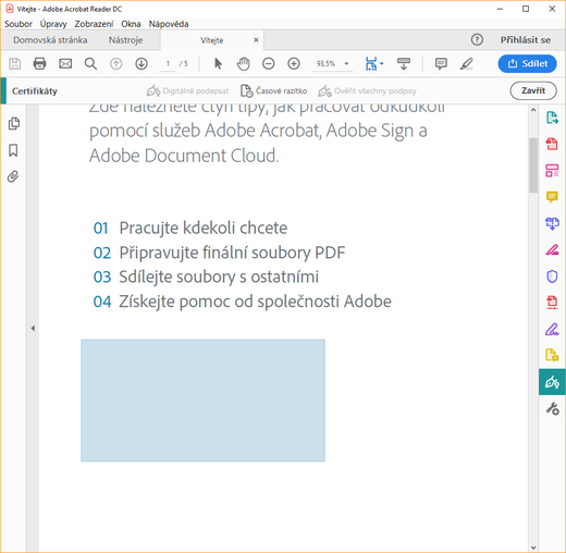 Digitální podepisování v Adobe Readeru se výrazně zjednodušilo a nepotřebujete na to nic jiného, než zmíněný program a digitální certifikát. Možnost podepisování je dostupná přímo v bezplatné verzi Adobe Readeru.
